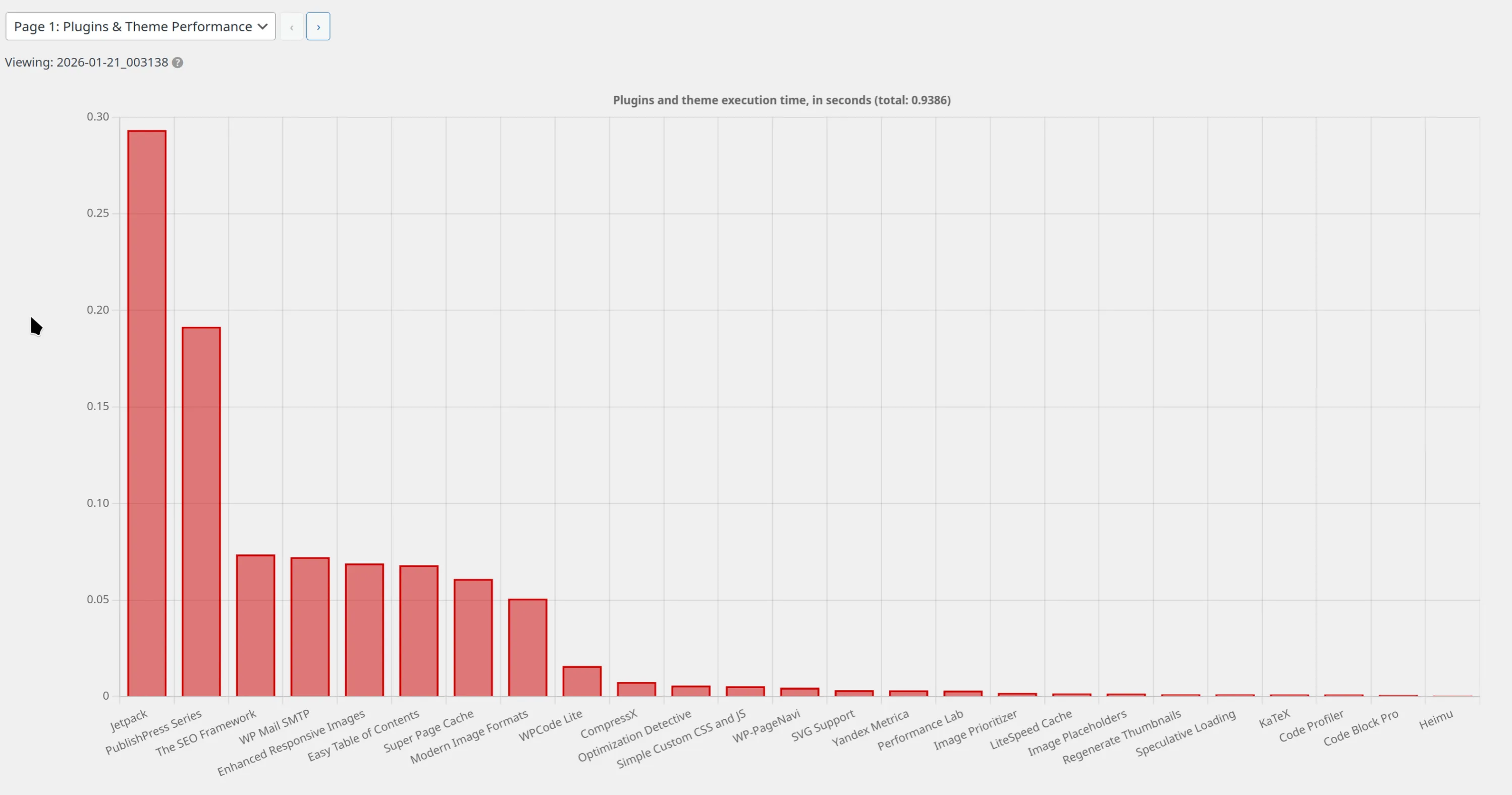 由于 Google 的报告,我快速排除了服务器网卡之前的选项,范围缩小到了服务器网卡问题跟应用程序代码慢之间。我在网上找到了一个 WordPress 插件 Code Profiler ,可以用来分析处理请求过程中的插件执行耗时。